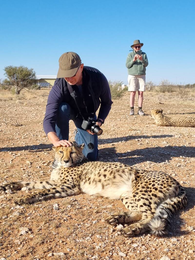 Heute nach unserem Frühstück wurde es ernst. Wir wagten uns in die Höhle der Geparden. Mit einem Safarijeep fuhr uns unser Guide zu zwei Geparden, Shiraz und Merlot.