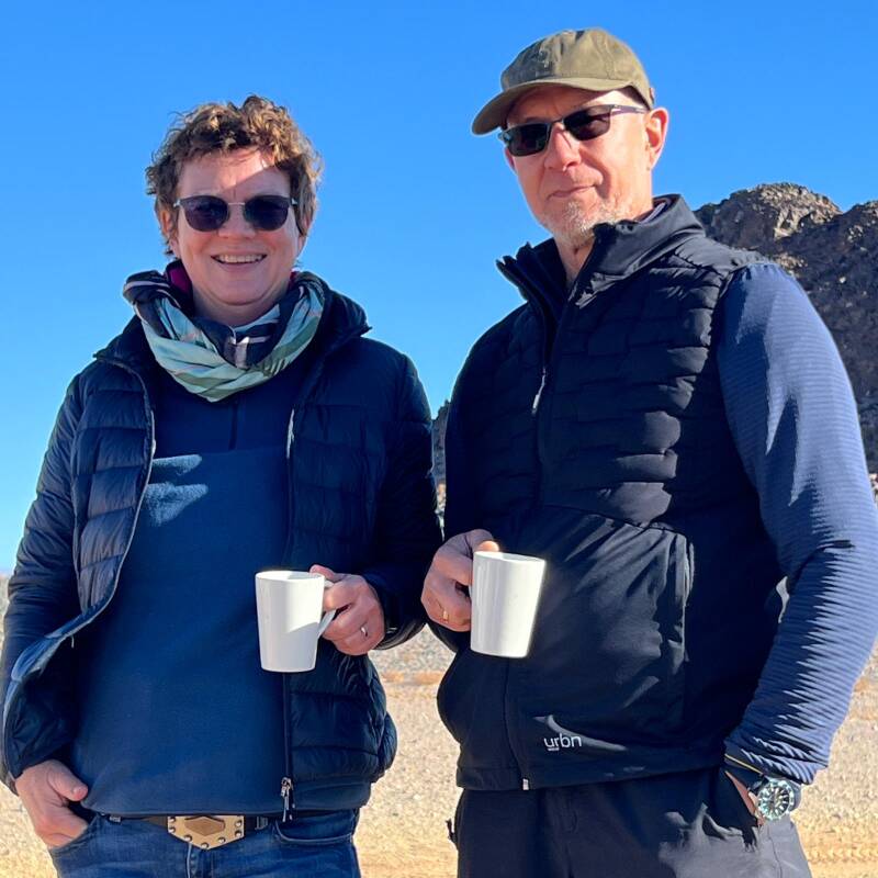 Unser Tag begann um 4.55 Uhr, wir sind zwar normalerweise eher Langschläfer, aber für dieses Highlight sind wir alle sehr gerne früh aufgestanden. Um 05.30 Uhr drehten sich die Räder unseres Hilux, unser Vormittagsziel war die Namib Skye Balloon station. Wir starteten bei 1 Grad Celsius und Nebel auf der graved Straße.