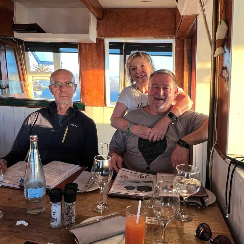 Das Restaurant the Tuc sieht innen aus wie ein Schiff mit Allem, was ein Schiff so ausmacht, wir haben wieder einen tollen Servicekellner Neville, der uns den catch of the day (Kabeljau) empfiehlt. In Namibia essen zu gehen, ist immer ein Genuss. Alles ist vorzüglich zubereitet und sehr frisch. Wir verleben einen schönen Abend, danach gehts noch zum butcher, einer Bierbrauerei, wenns sowas schönes bei uns gäbe, ich wäre dauernd dort. Das Lokal ist so stylisch und gemütlich, dazu soooooo nette Menschen und das non alcohol Bier schmeckt auch. Bis morgen😘